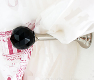 アイアンカーテンレール・ラインストーンシリーズは少し太めの直径19mmの真鍮ゴールドとスタイリッシュなシルバーレールにクリスタルビーズやブラックビーズがあしらわれた上品な重厚感のあるカーテンレール。