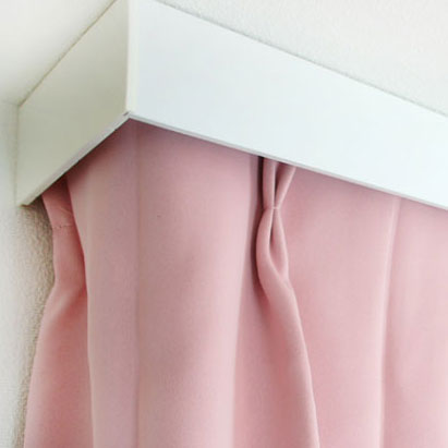 カバーはすっきりとした直線なので、天井付けにすると造り付けのカーテンボックスのようにお部屋になじみます。